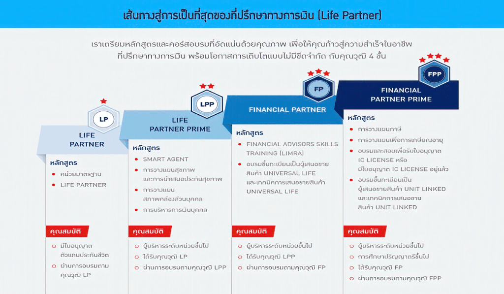 ให้คำแนะนำแก่ลูกค้าและผู้มุ่งหวัง ครอบคลุมในทุกด้านเพื่อตอบโจทย์เป้าหมายในชีวิตของลูกค้าเฉพาะบุคคล